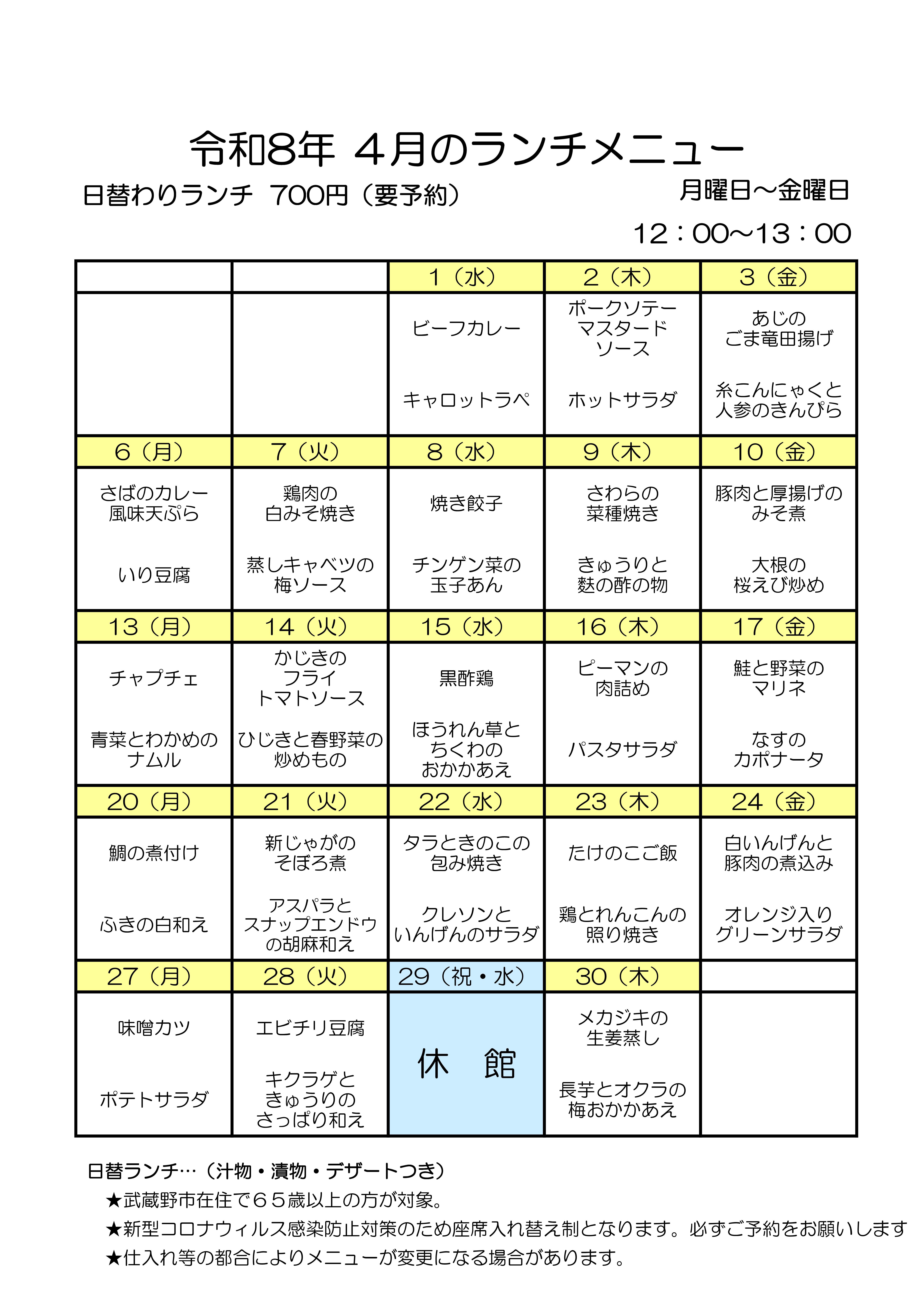 4月のメニュー
